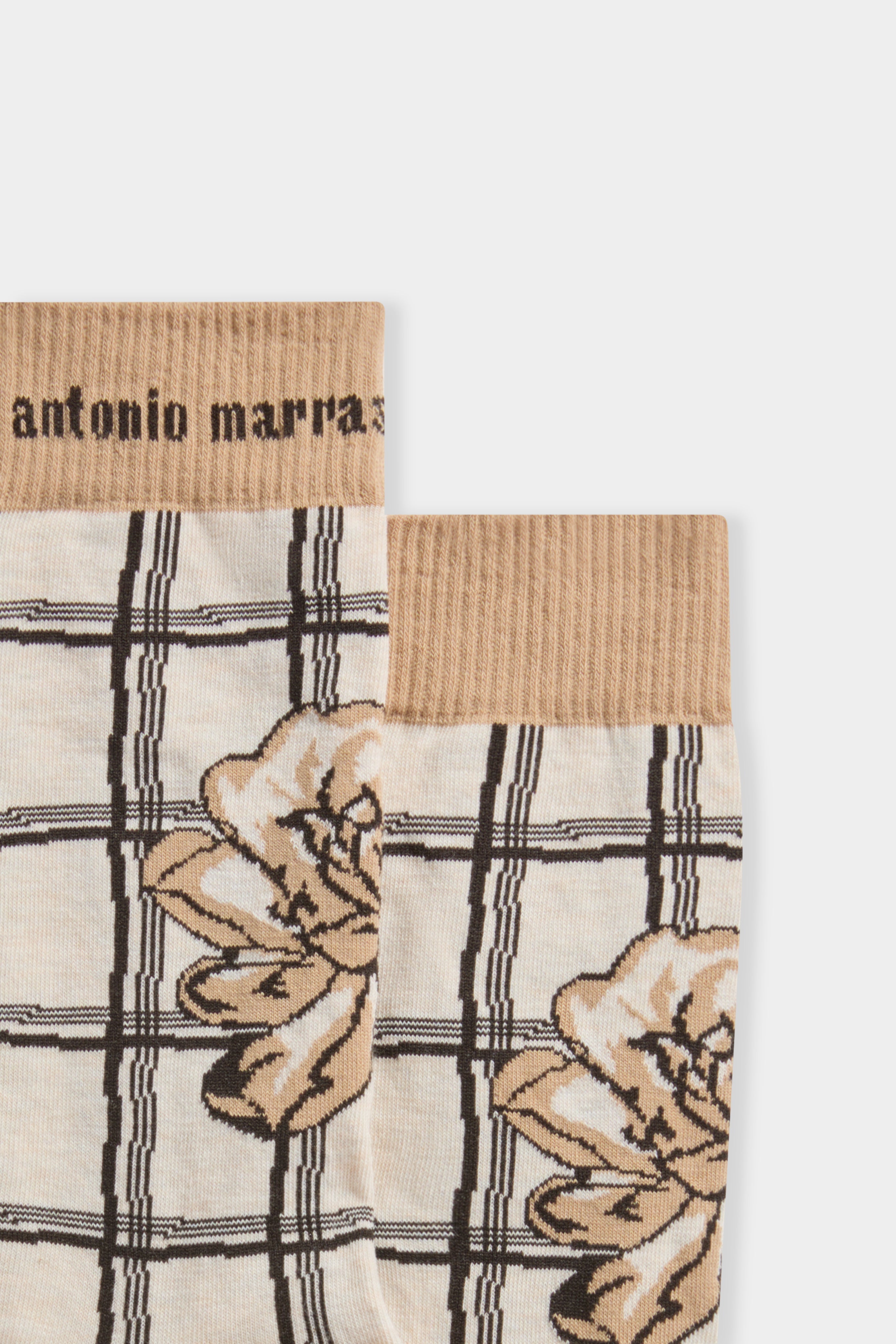 • Socks in a soft cotton-blend with a ivory check pattern and floral jacquard motifs.