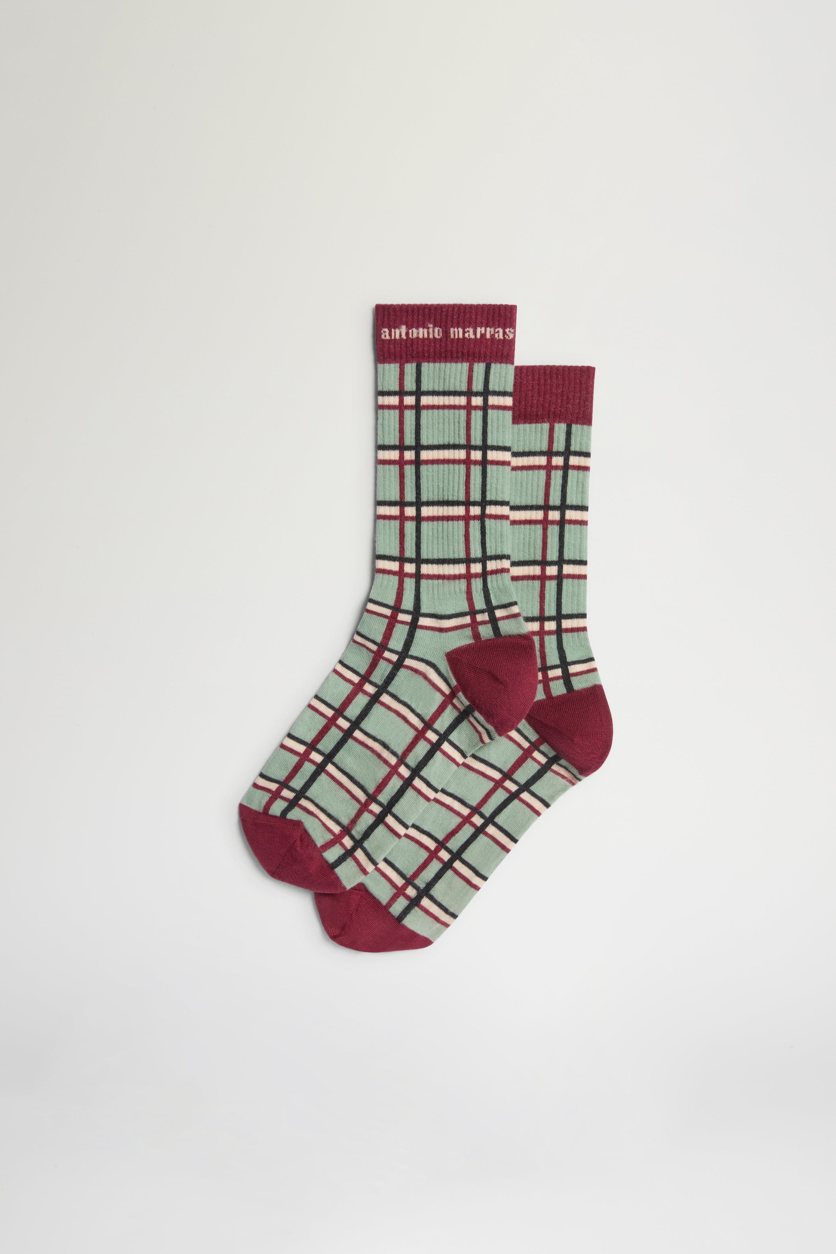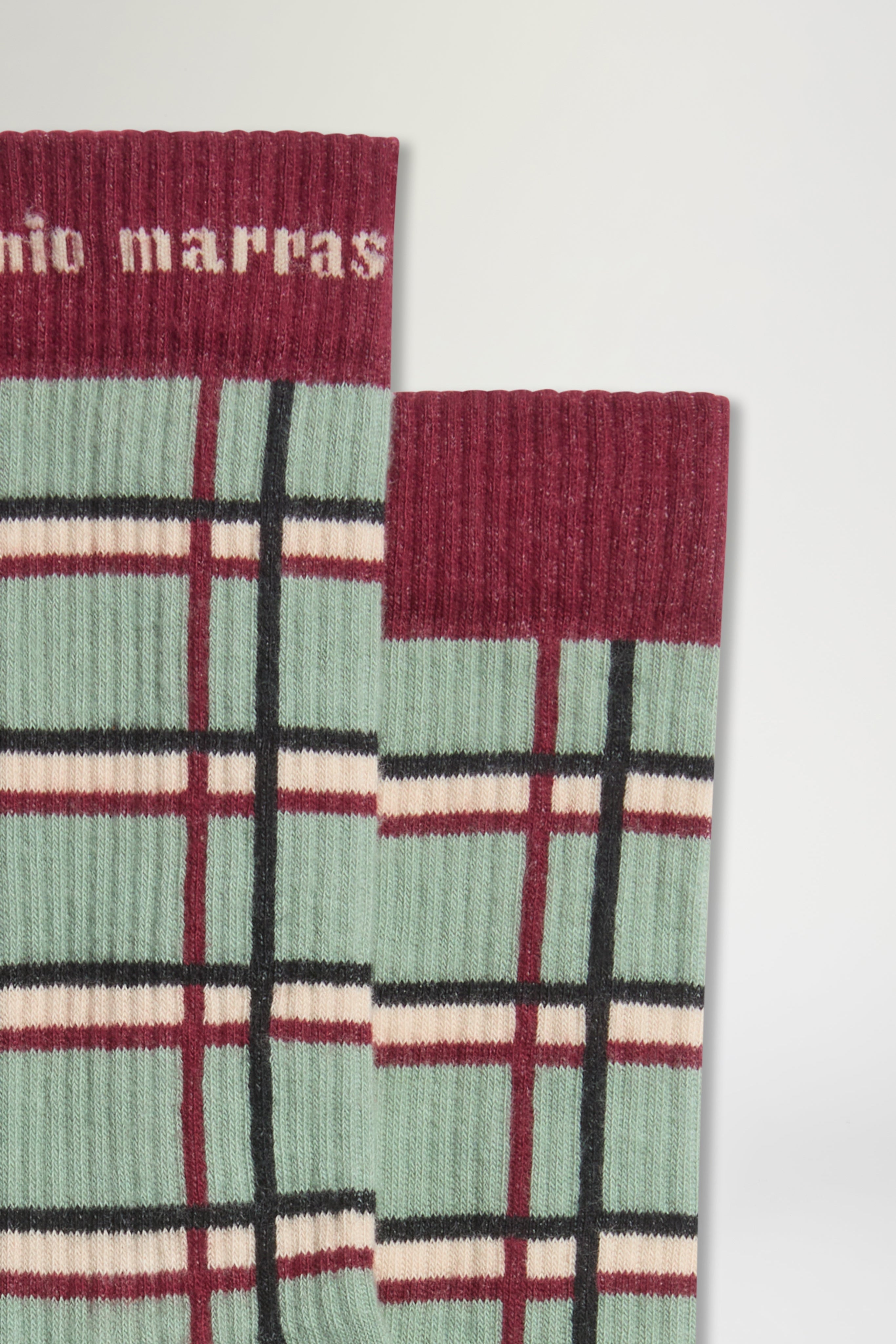 • Ribbed cotton-blend socks with a checked pattern in green, black and bordeaux, featuring an embroidered Antonio Marras logo.