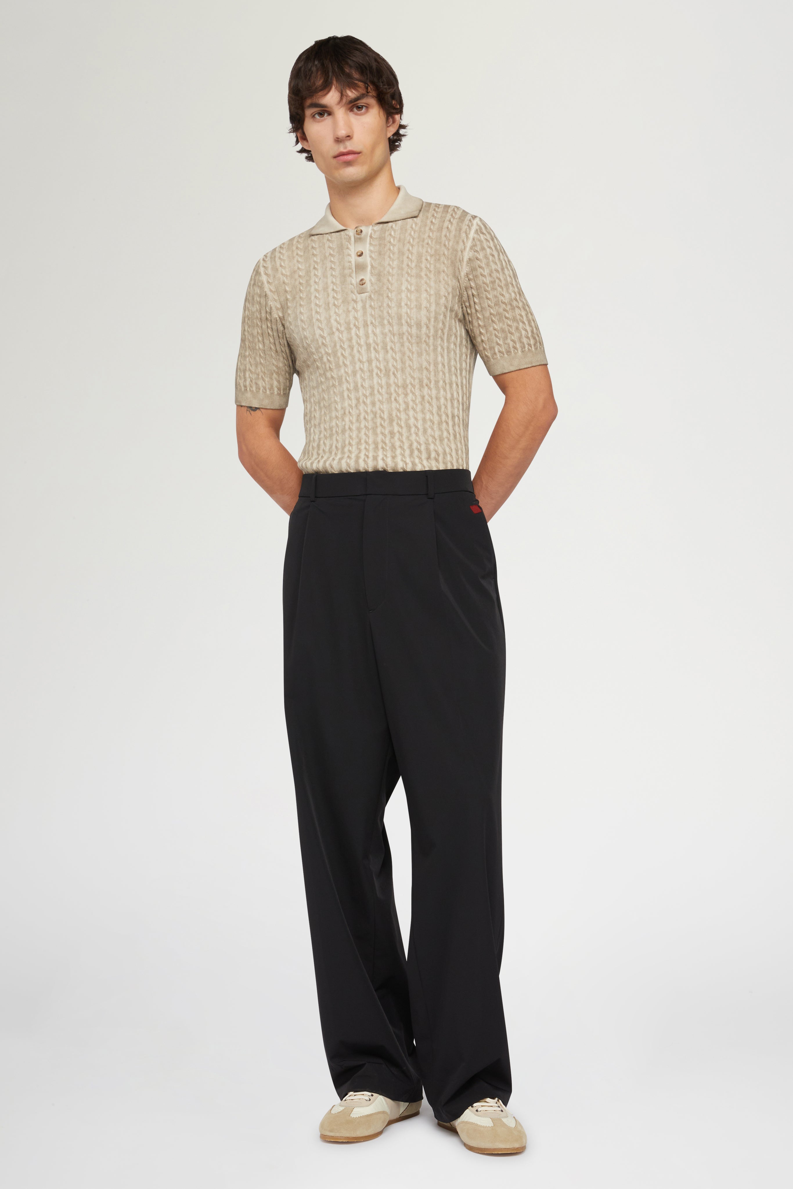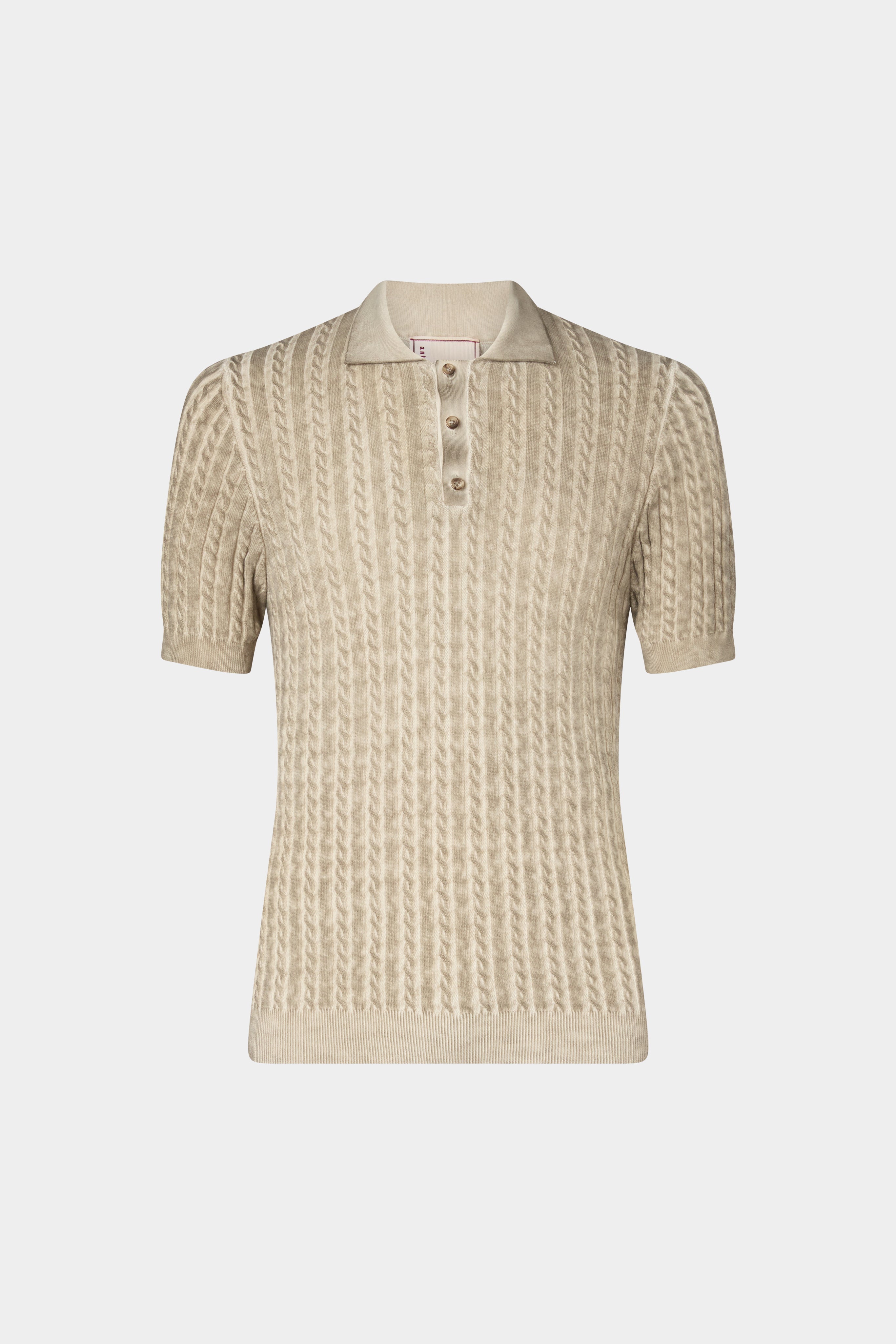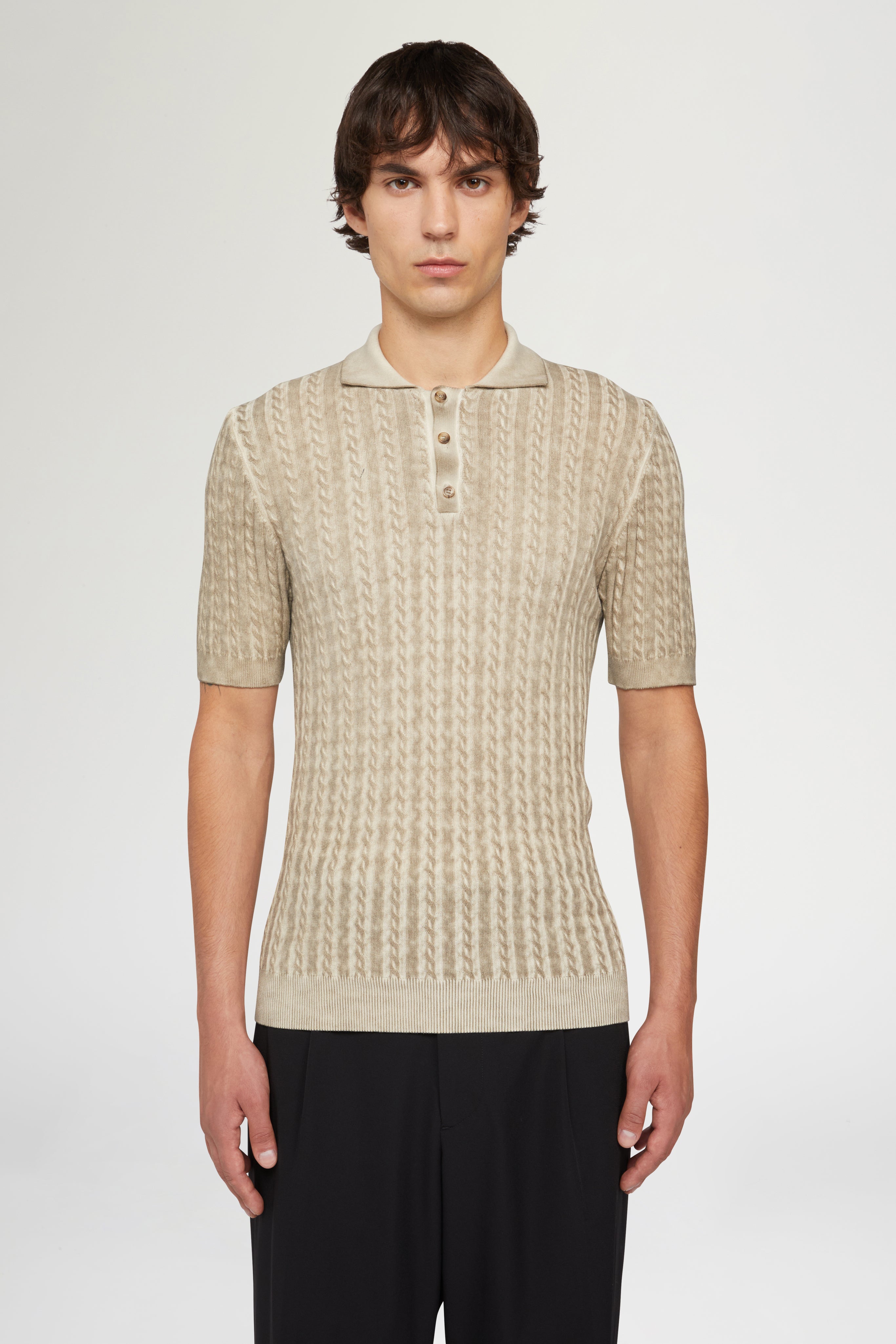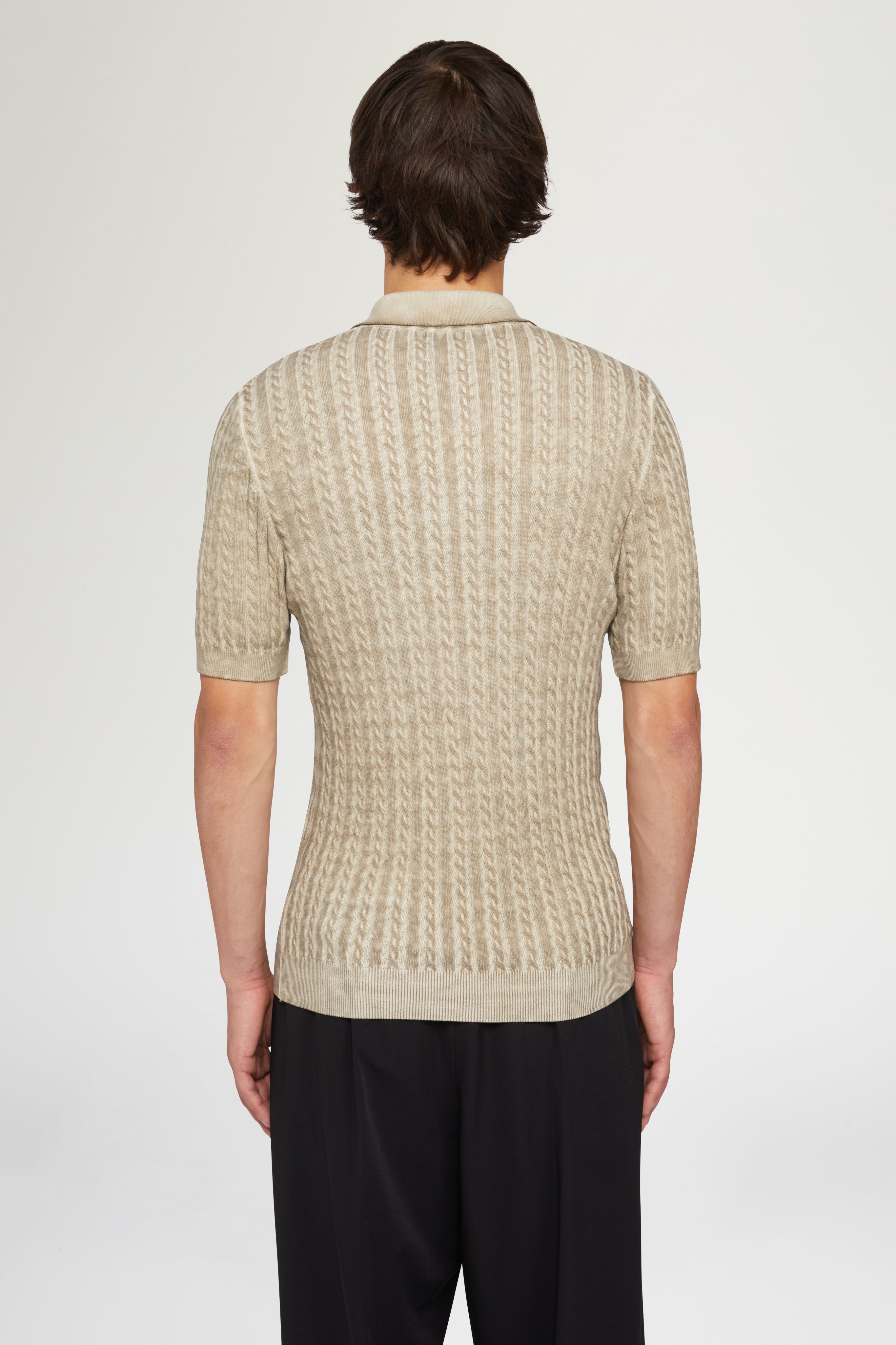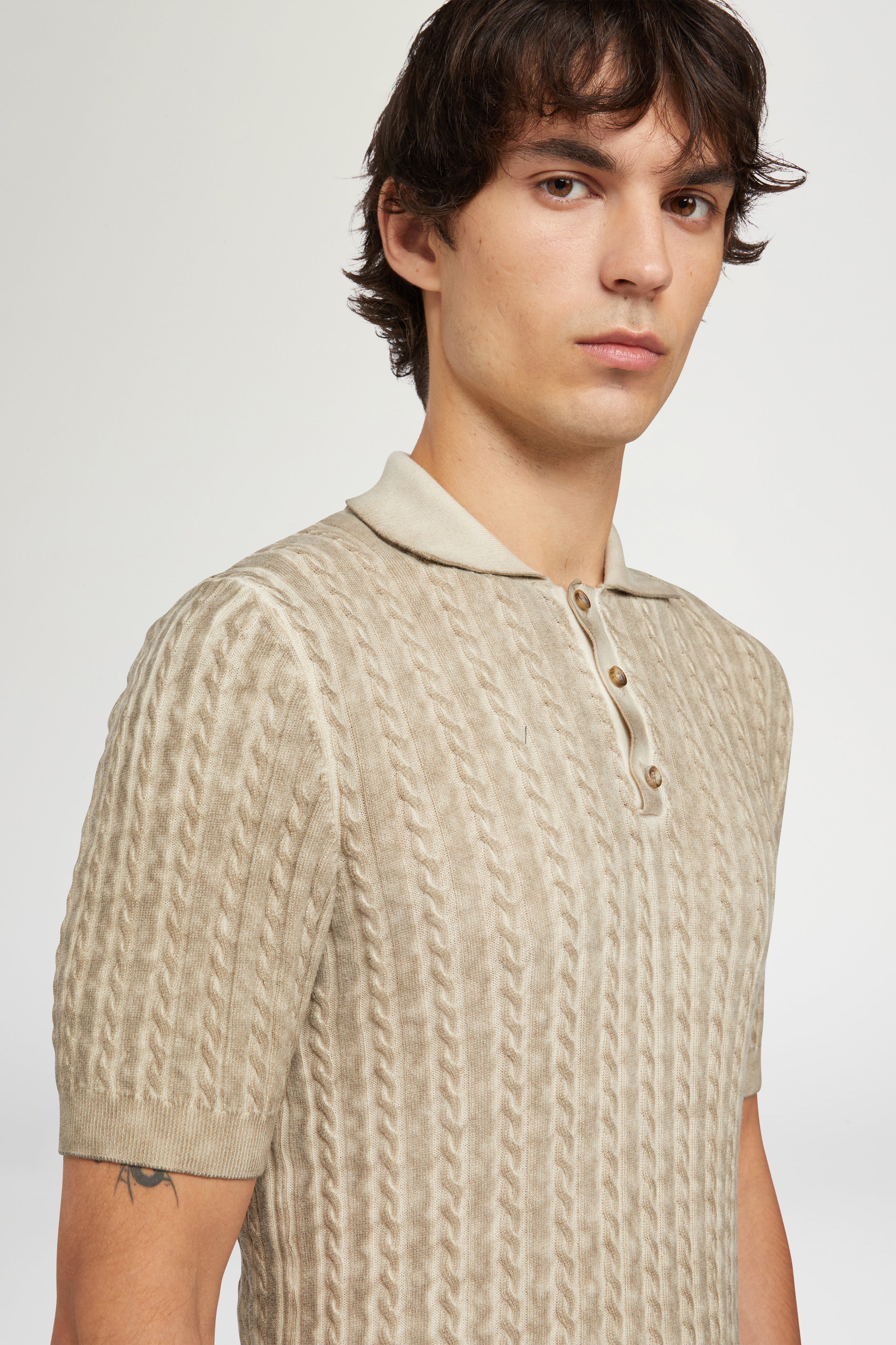 Short-sleeved knit polo shirt made of 100% cotton in beige color.