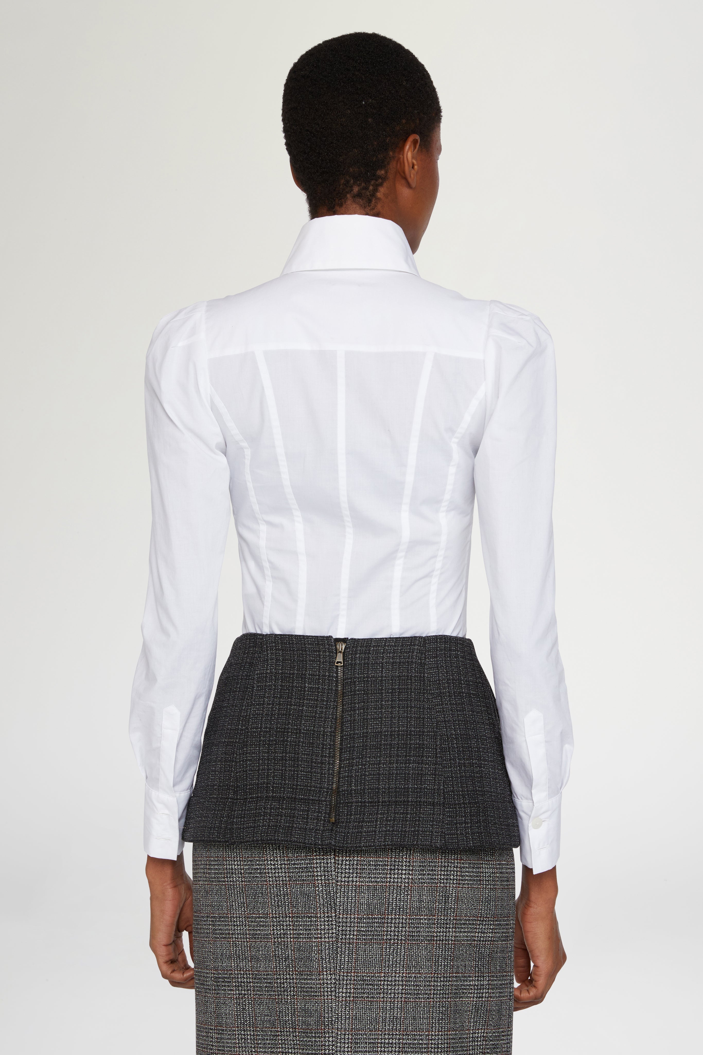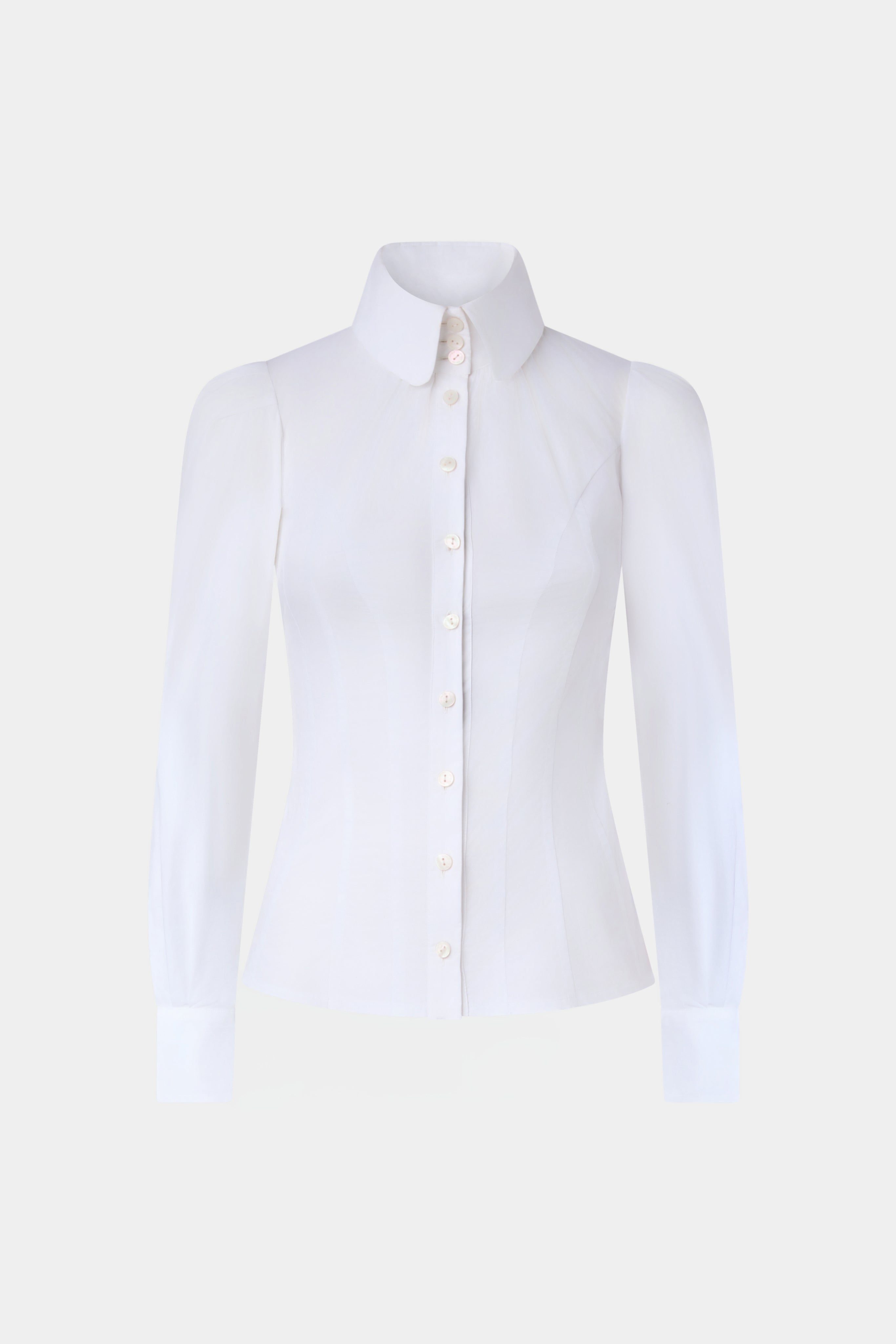 Elegant white shirt crafted from 100% cotton, featuring a tailored slim fit with structured seams. Designed with long sleeves, buttoned cuffs, and a classic collar for timeless elegance.