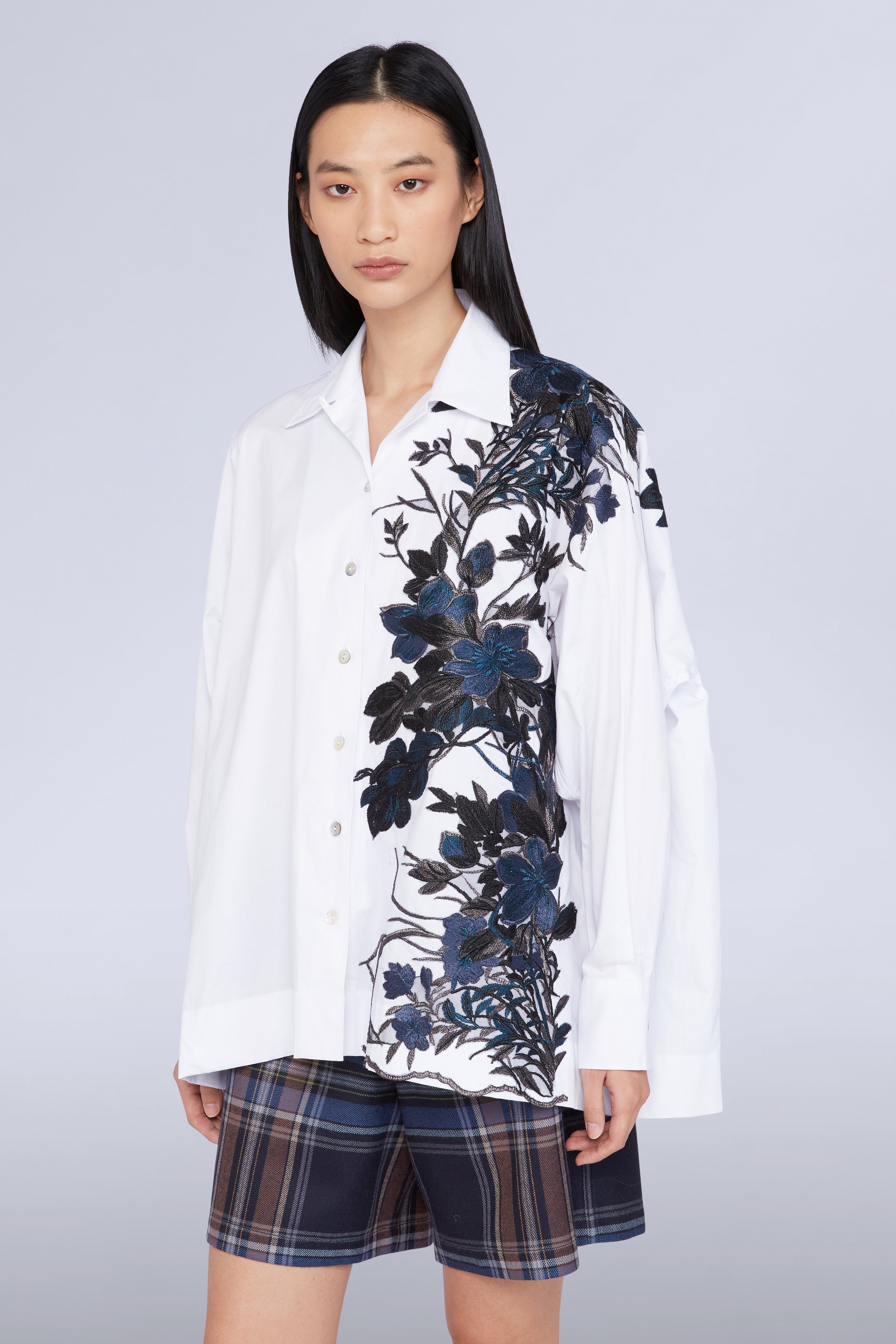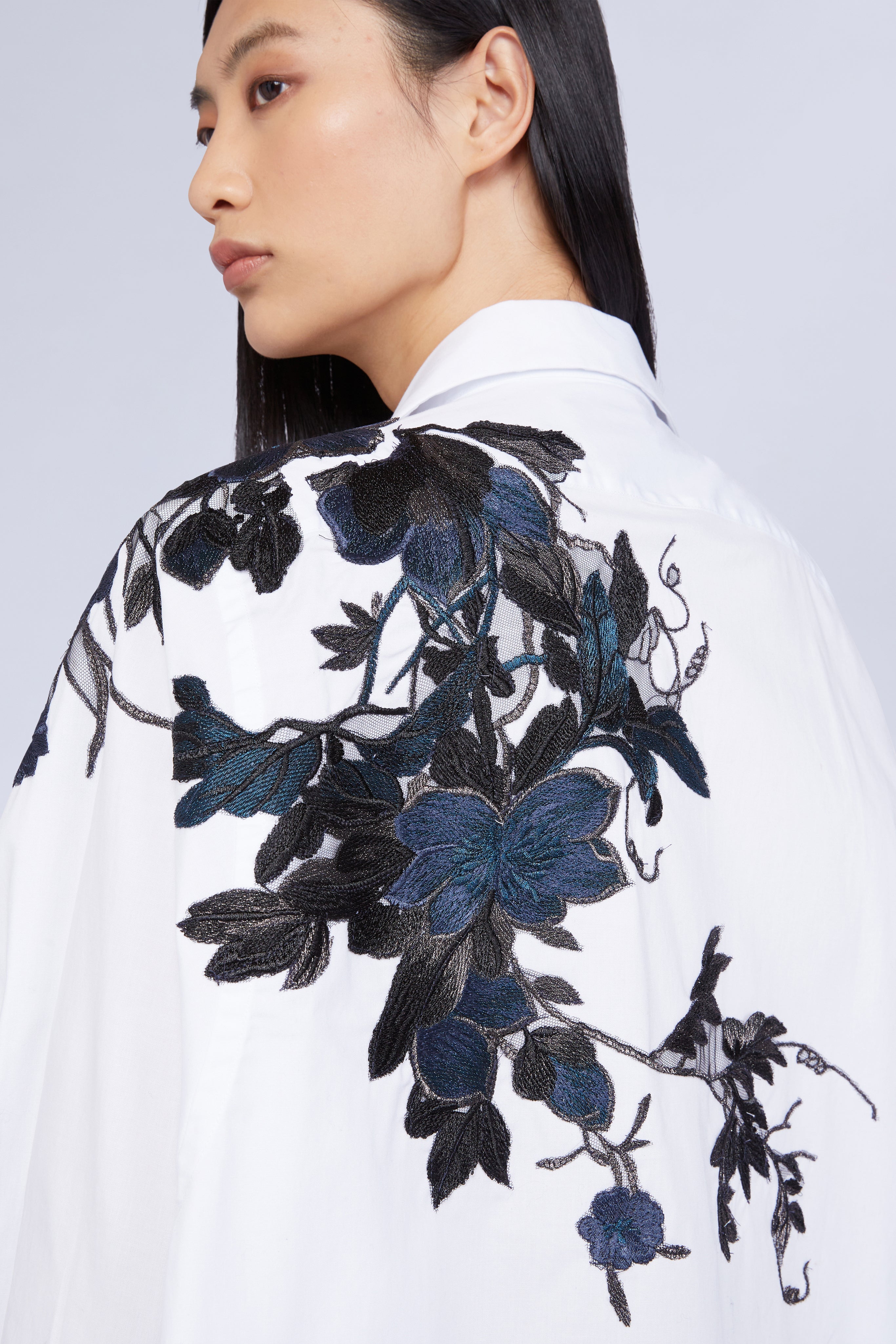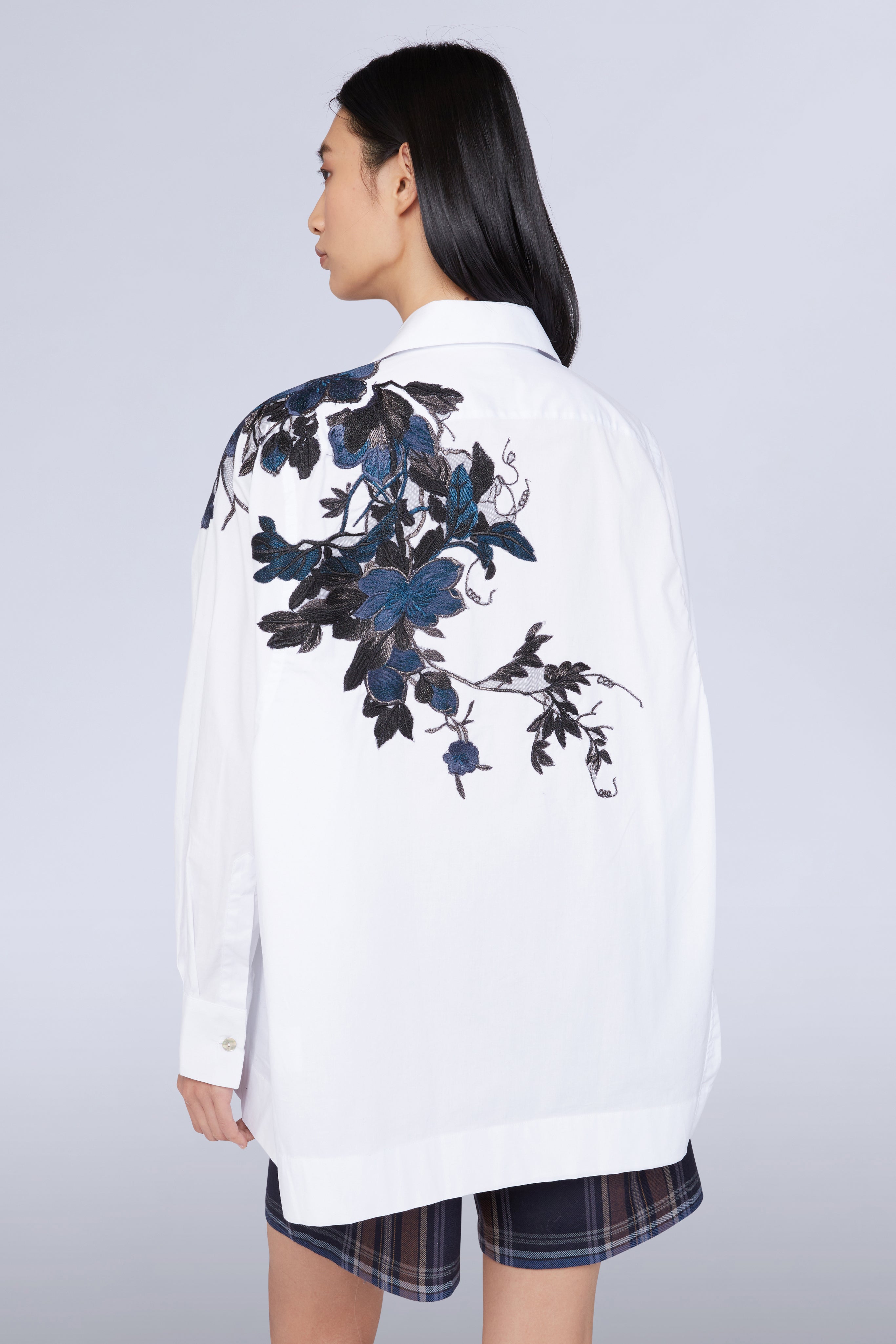 Oversized white shirt made of 100% cotton with lace floral embroidery.