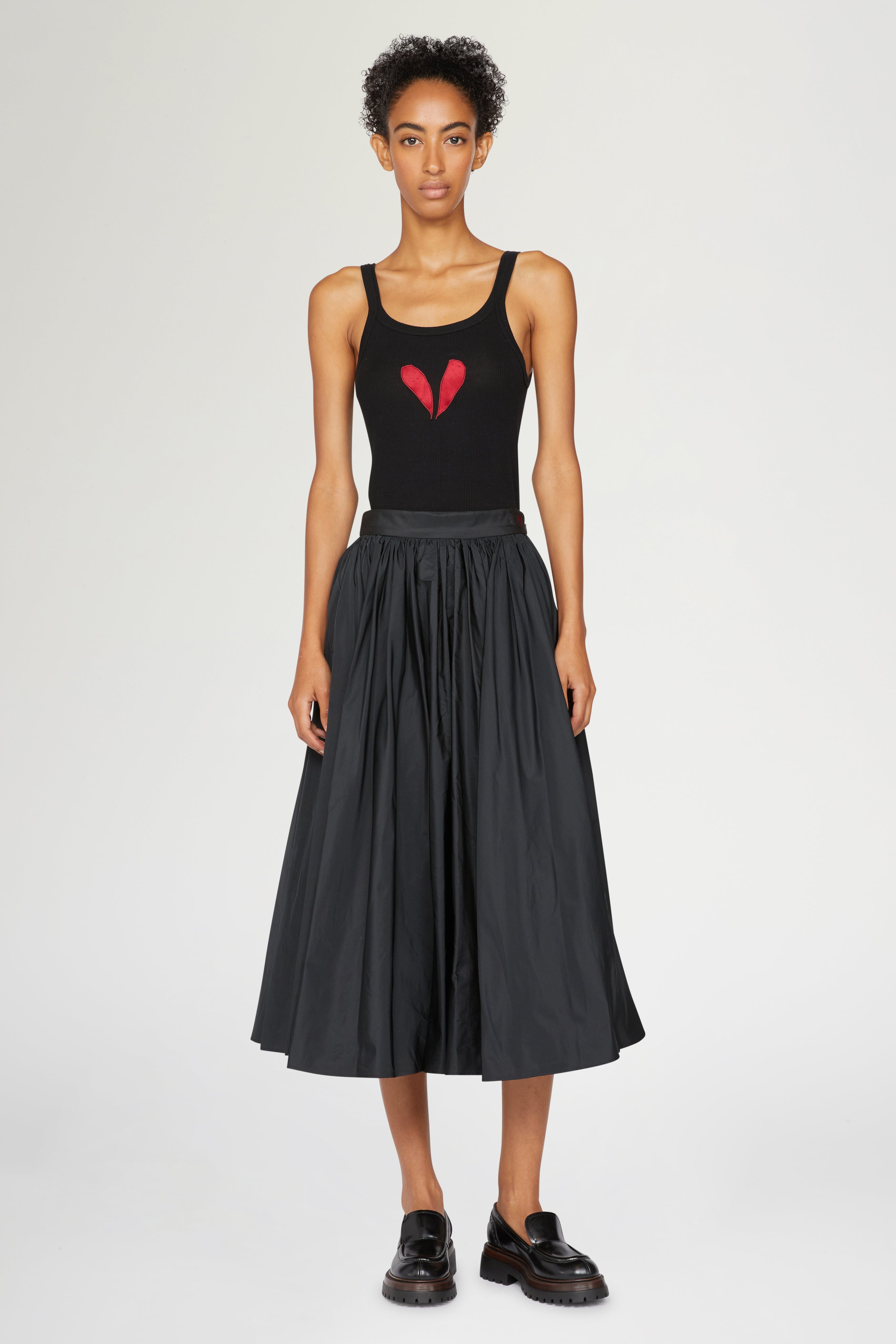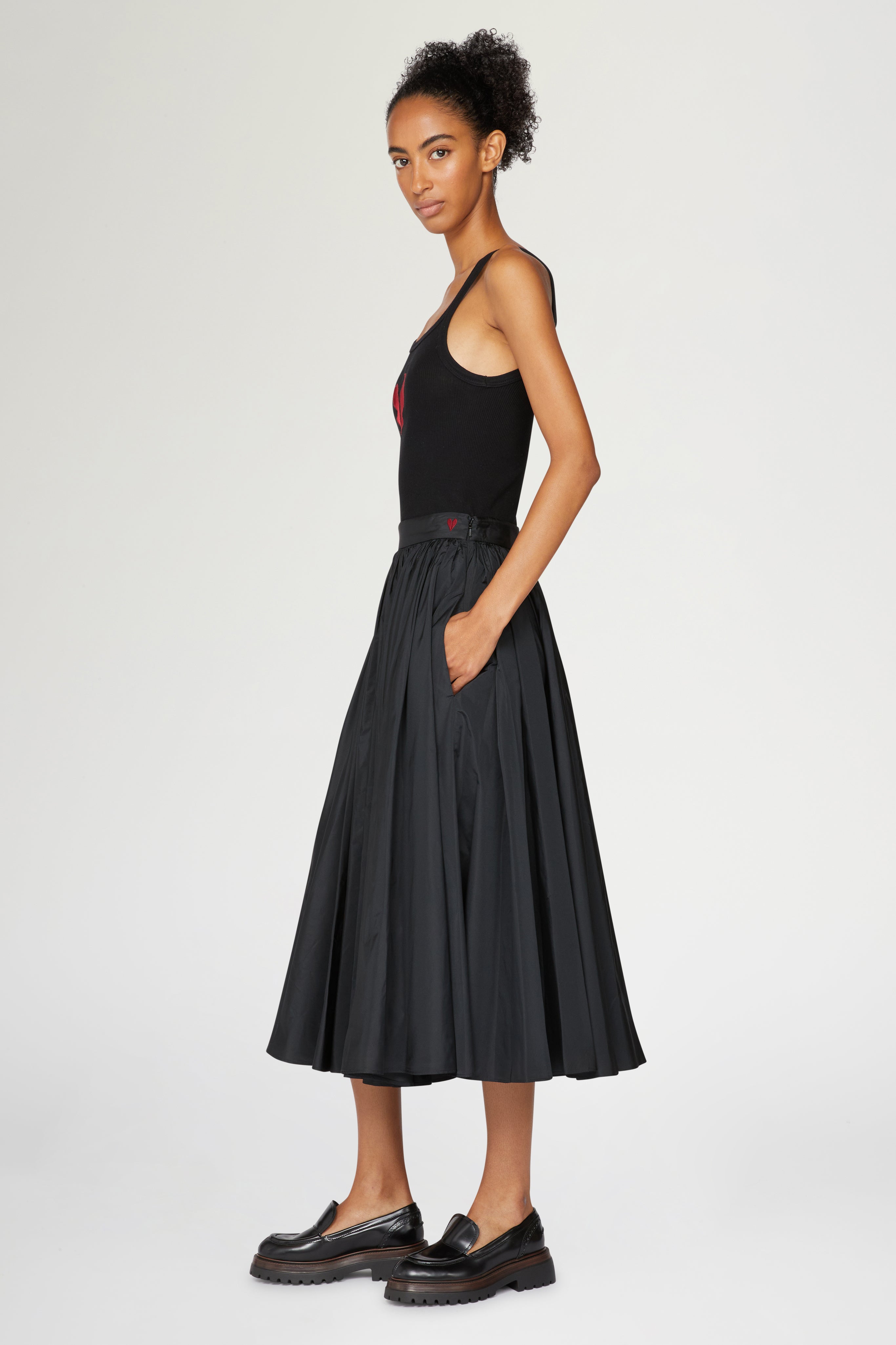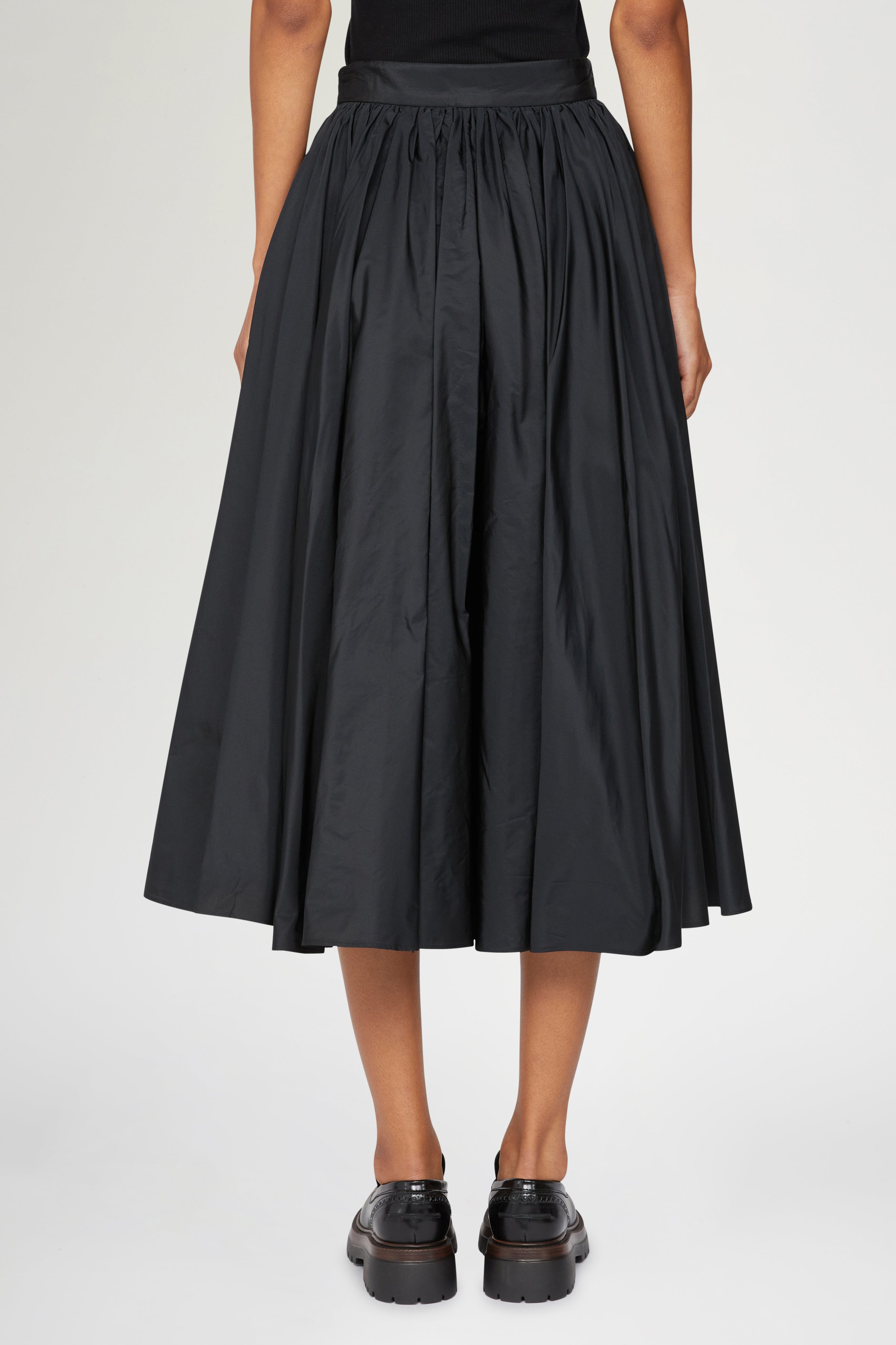 • High-waist black midi skirt with pleats made of silk blended fabric.
