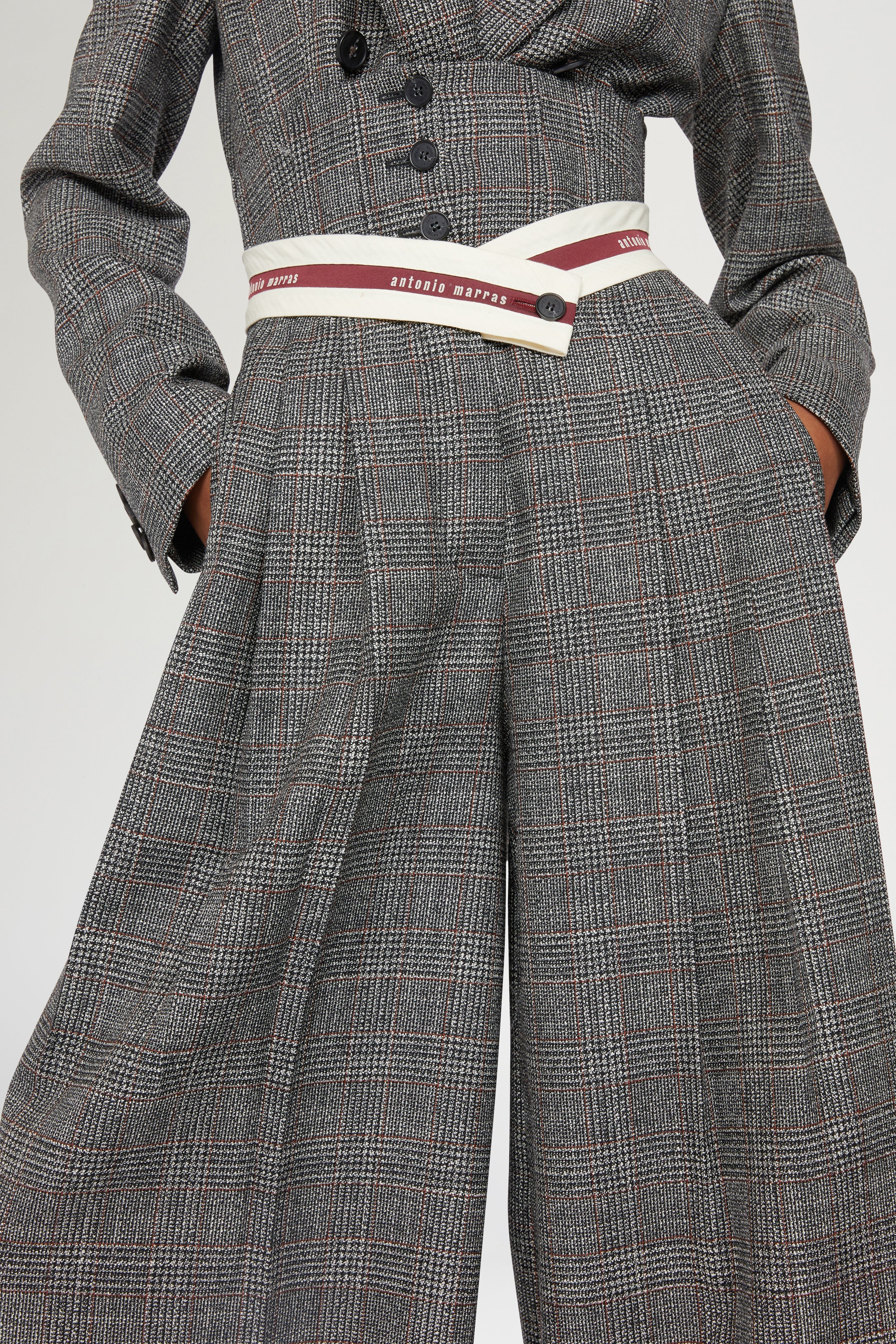 • These high-waisted Prince of Wales tailored pants are crafted from 100% virgin wool. Featuring a wide-leg fit with pleats and cuffed hems, designed for a sharp, structured silhouette.