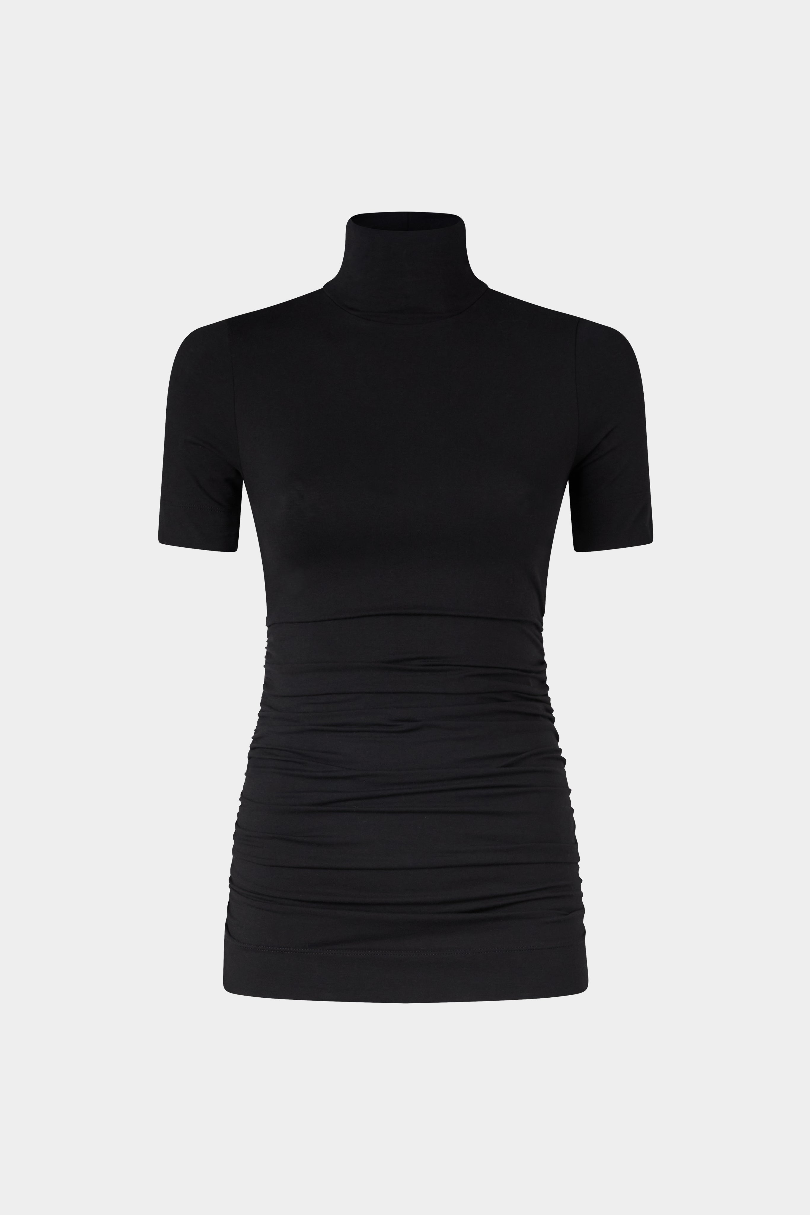 Fitted short-sleeve top with a turtleneck, crafted from soft black jersey.