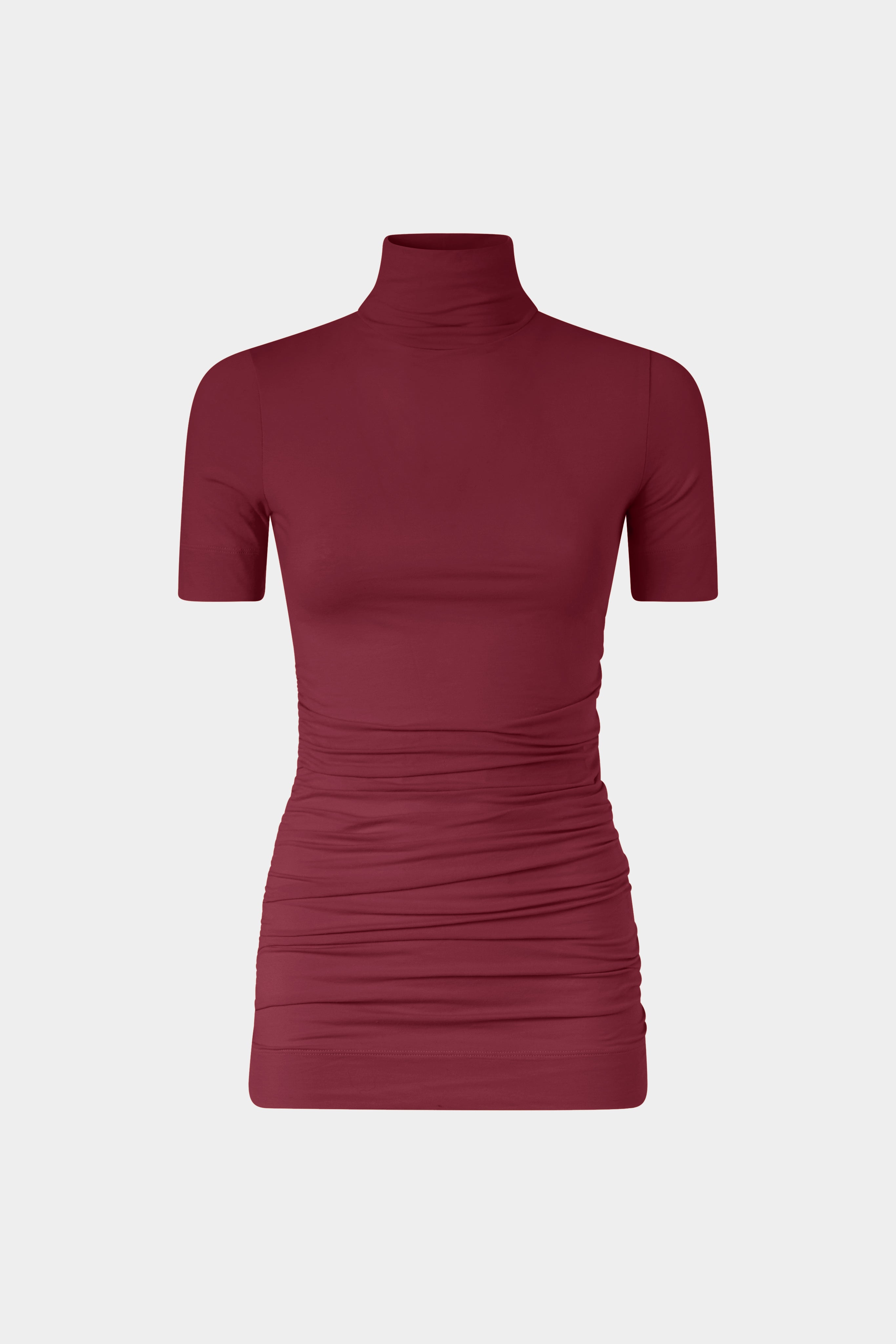 Fitted short-sleeve top with a turtleneck, crafted from soft bordeaux jersey.