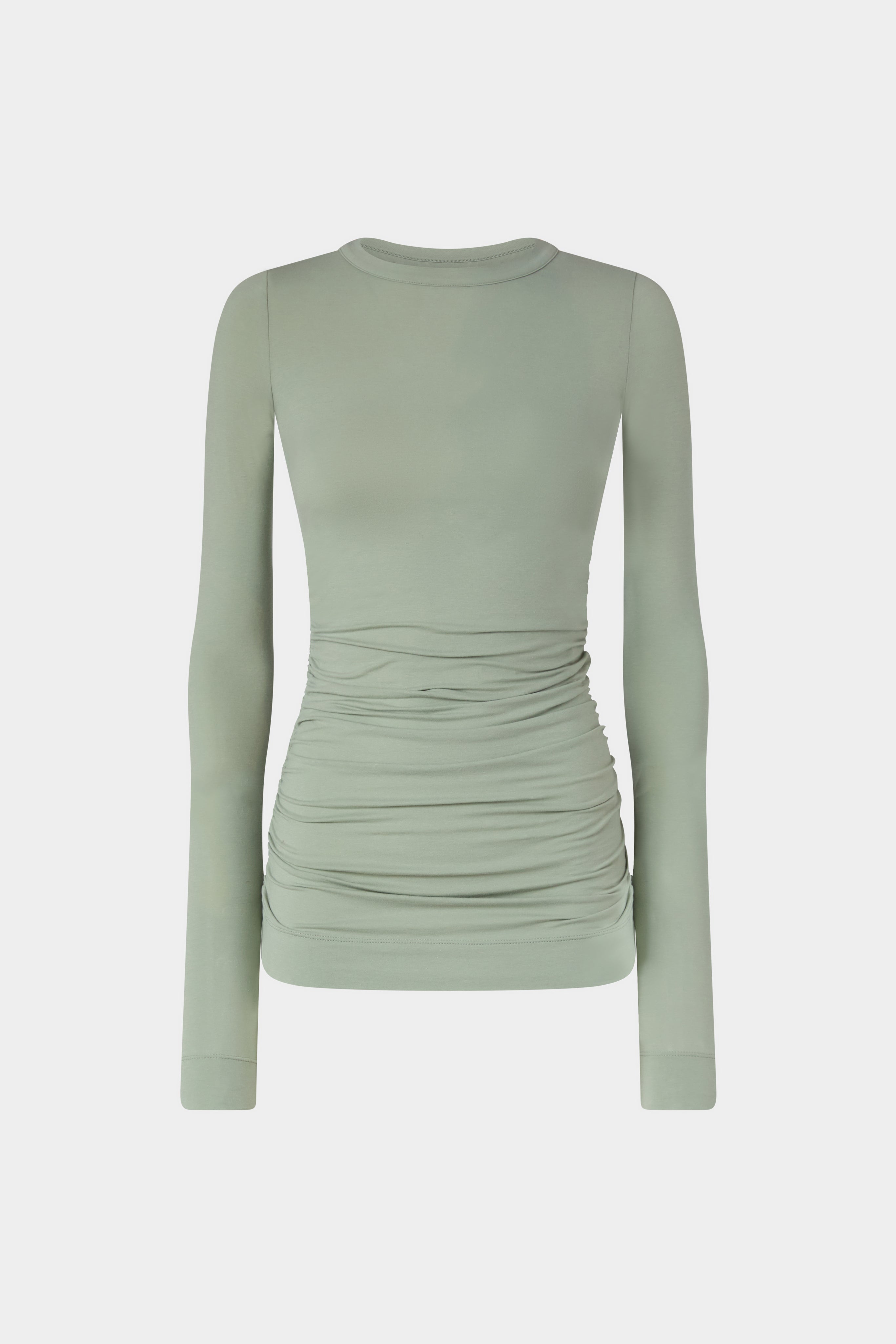 • Fitted long-sleeve top with thumbholes, crafted from soft sage green jersey.