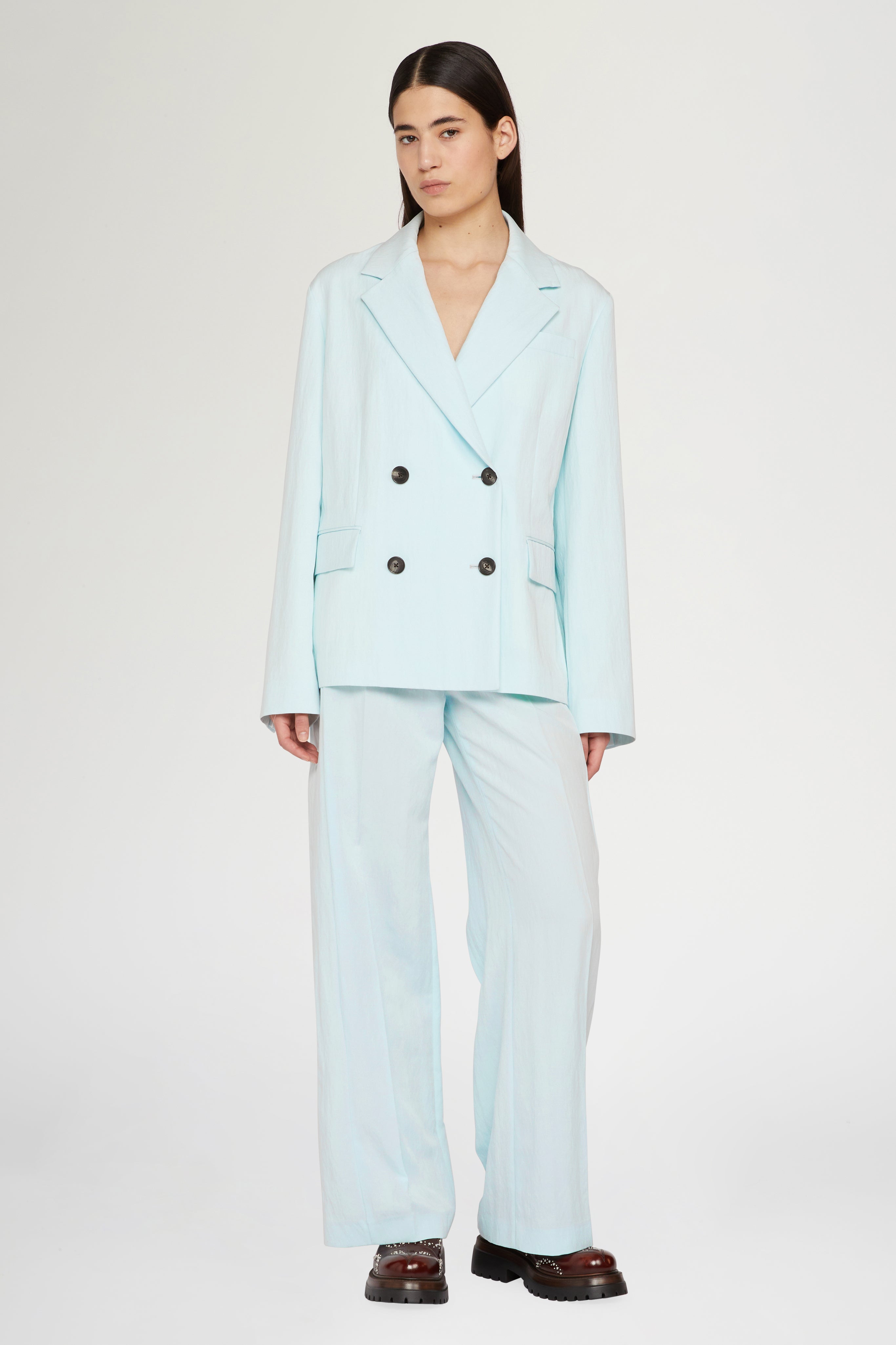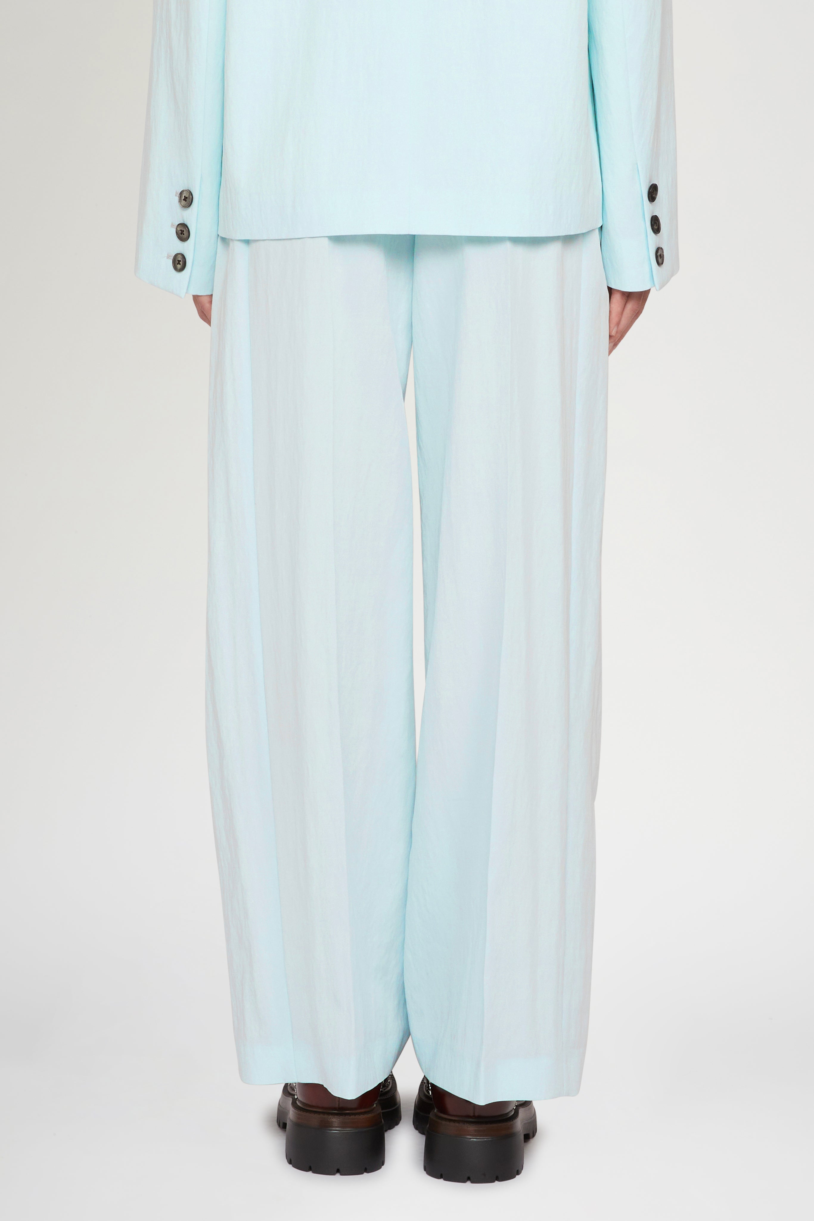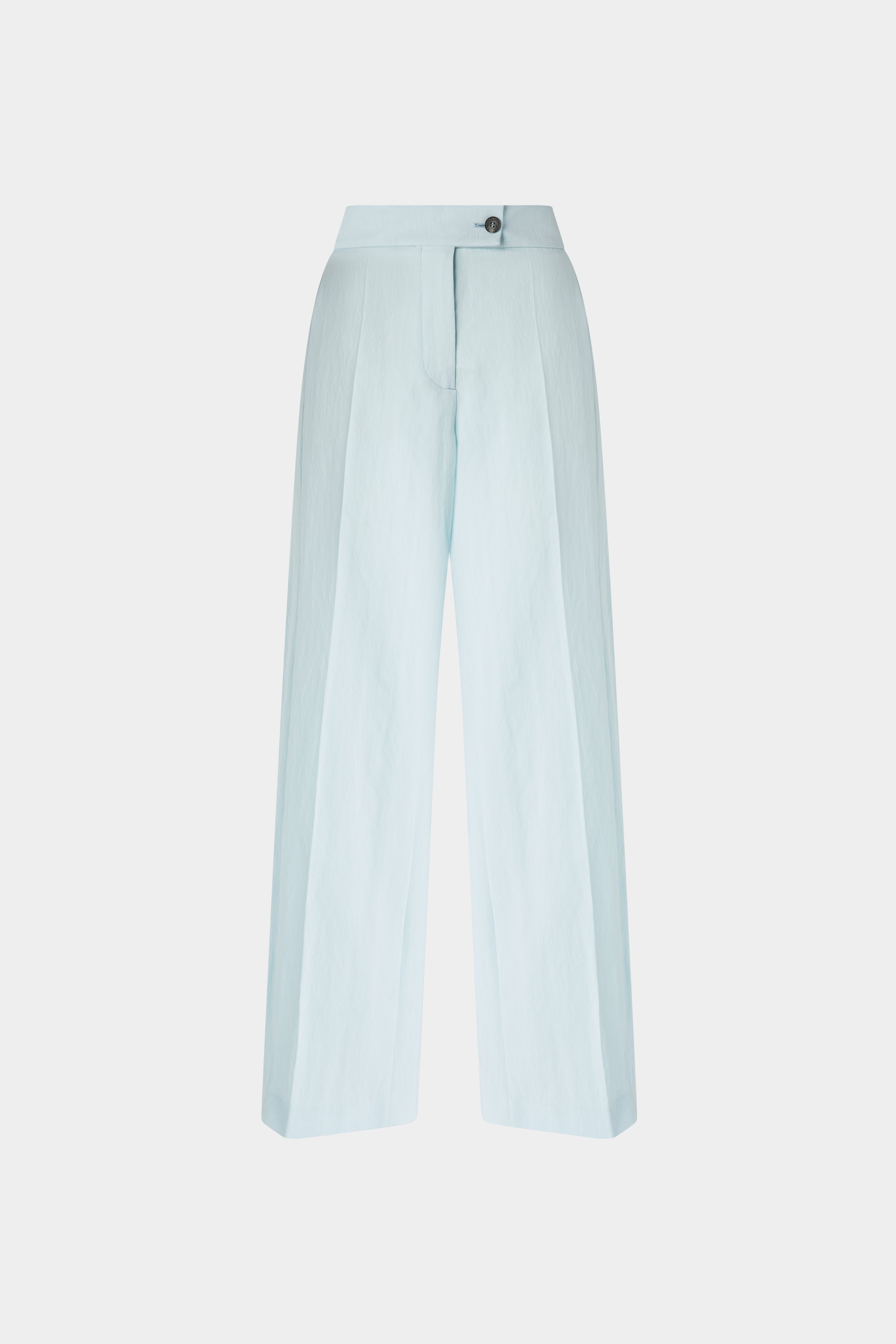 Tailored straight-leg pants crafted in a light, refined fabric with a subtle texture. The high waist and soft front pleats enhance the silhouette, while the ankle-length cut adds a modern, polished finish.