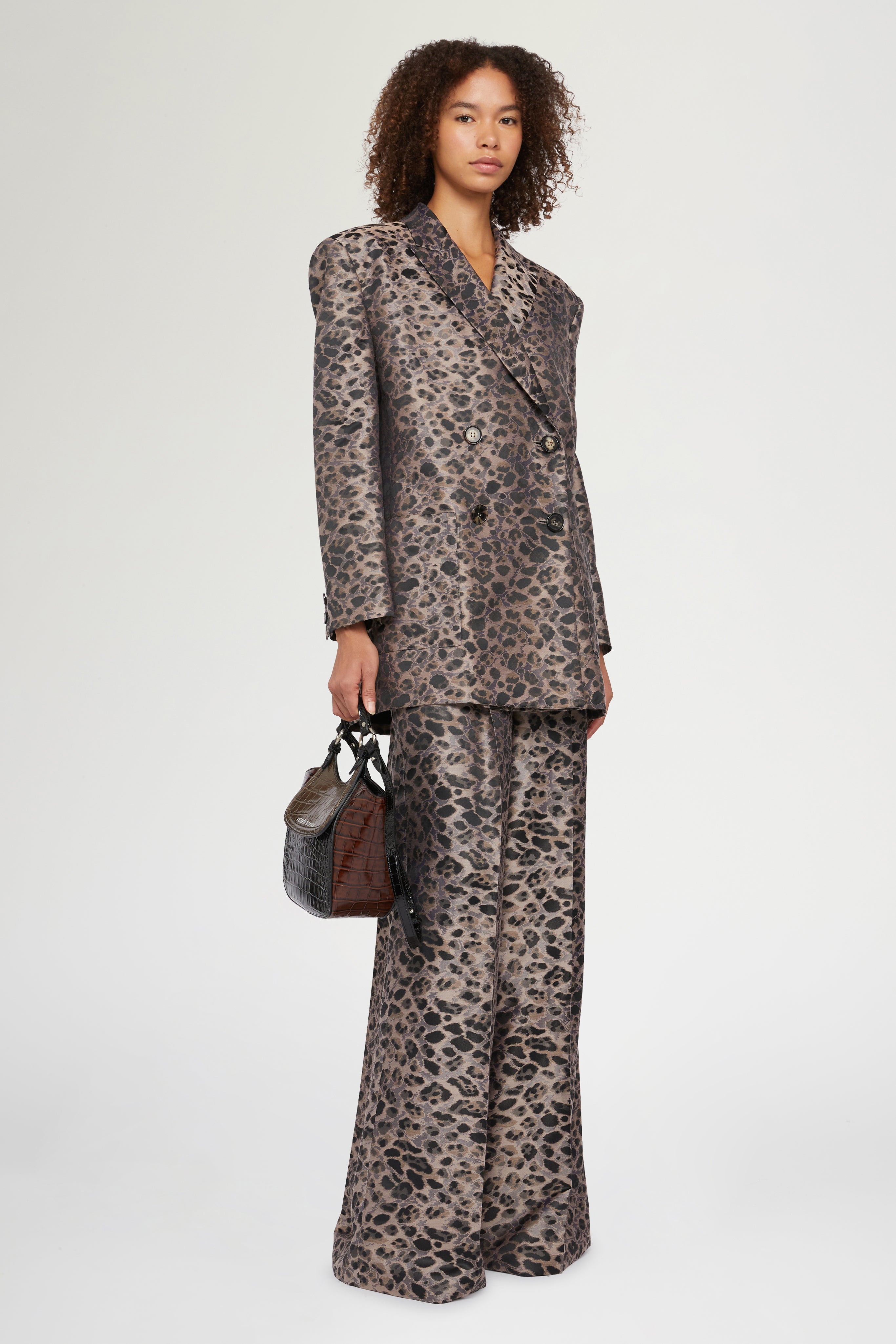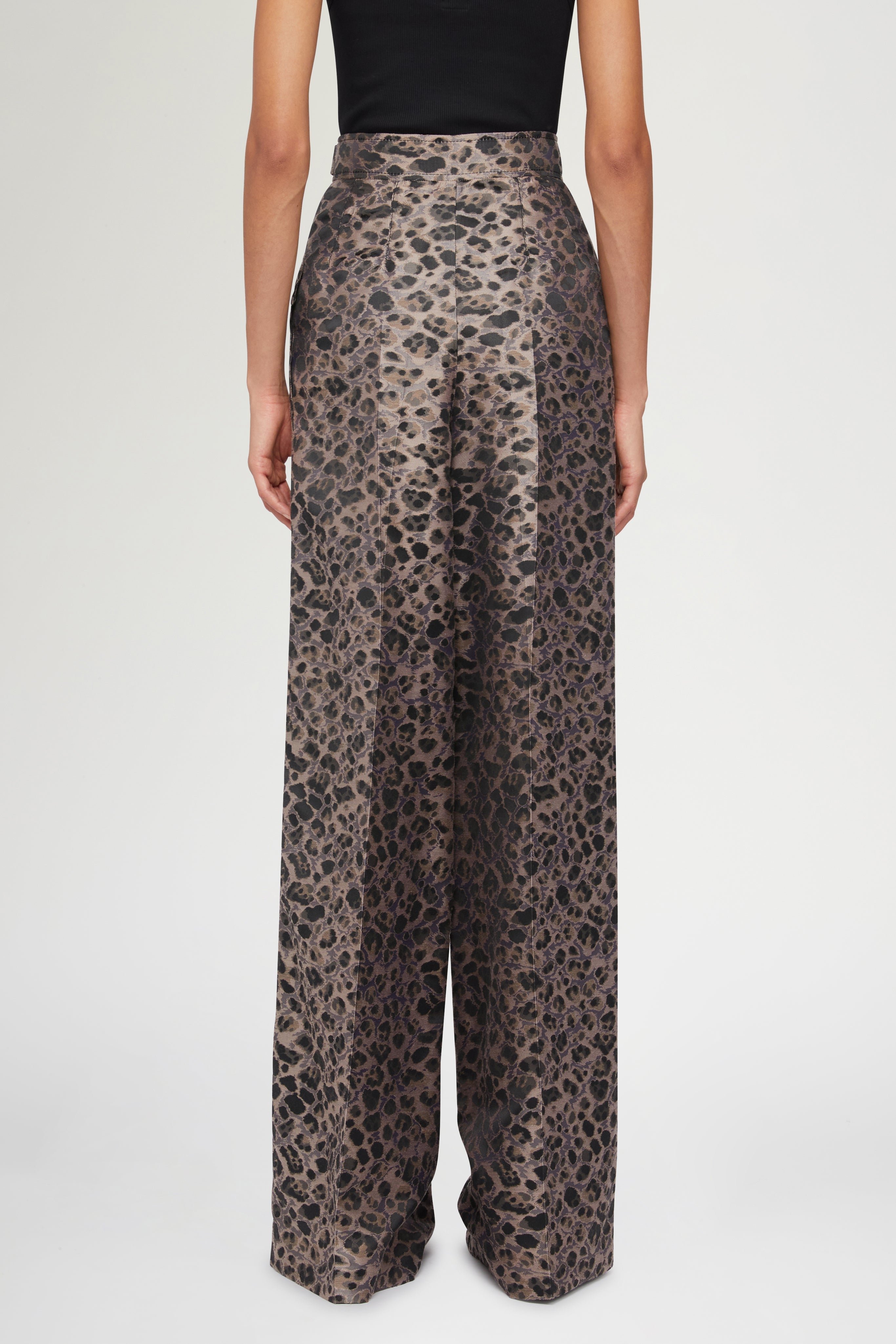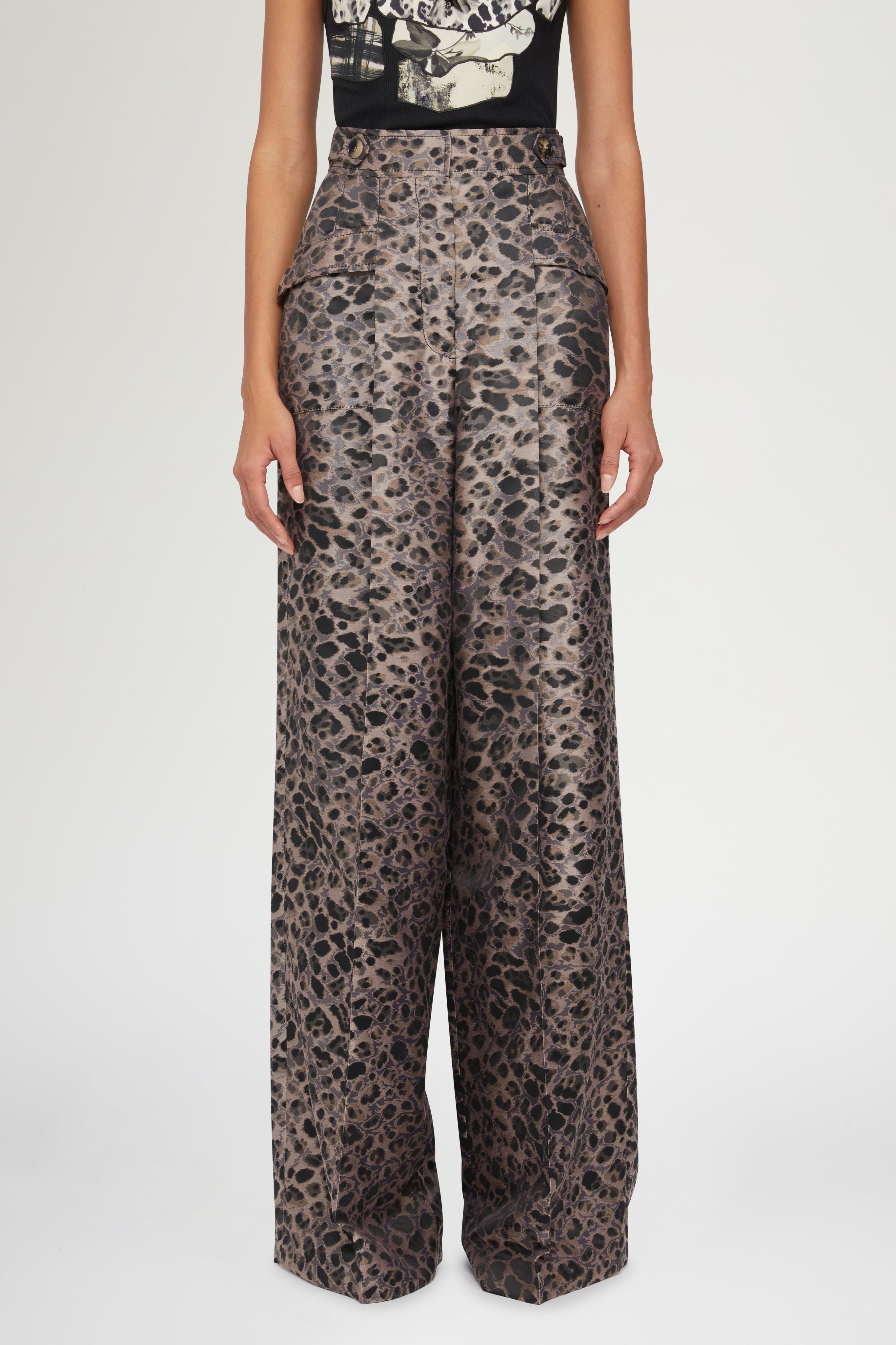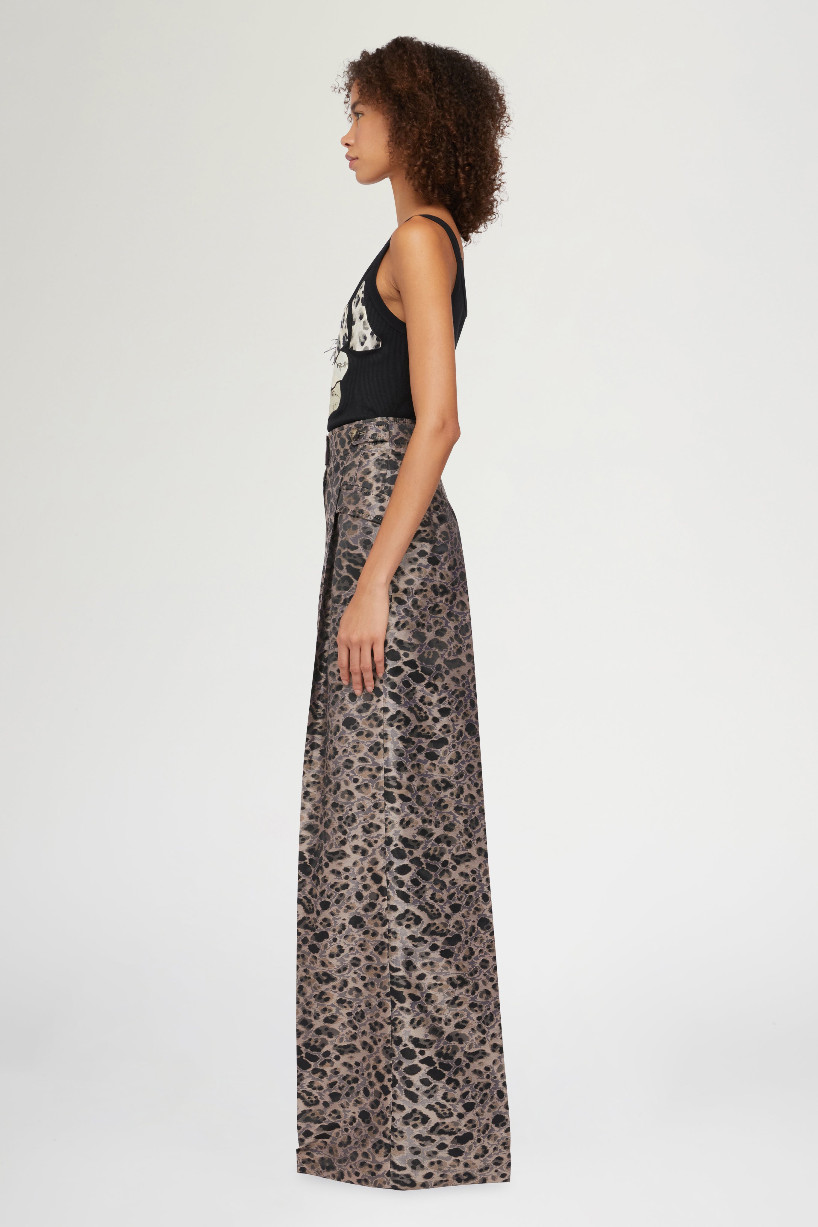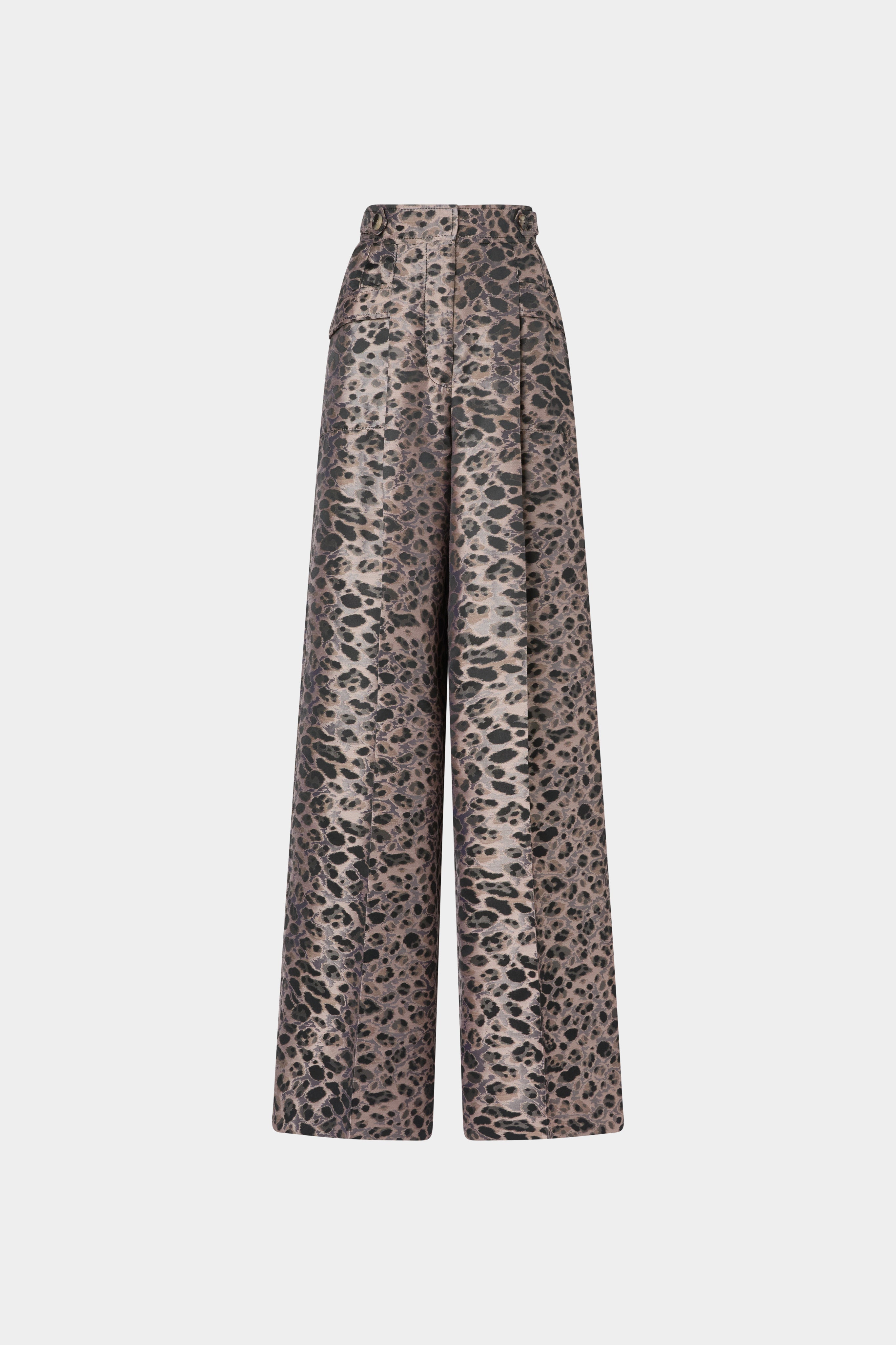 • Wide-leg palazzo pants with side pockets and animalier print.